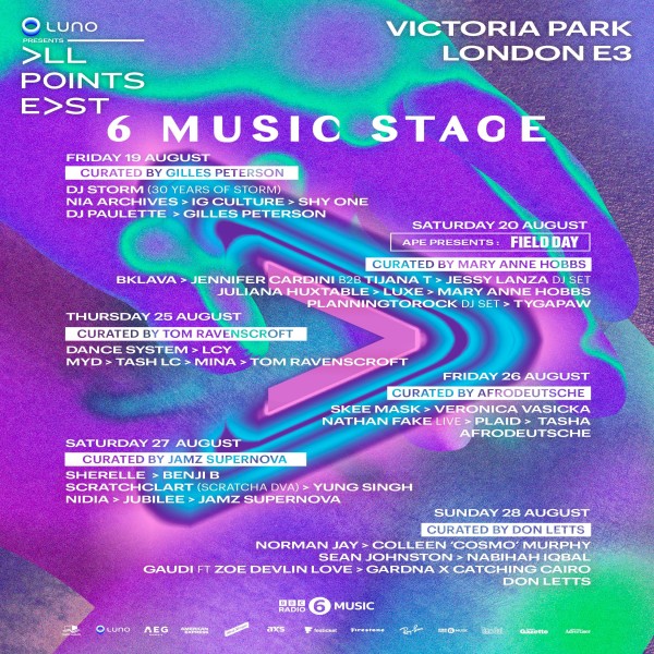 London’s own All Points East Festival has announced the line-up for its 6 Music stage, including performances from the likes of DJ Storm, Gilles Peterson and Bklava. You can view the full line-up on the poster below.