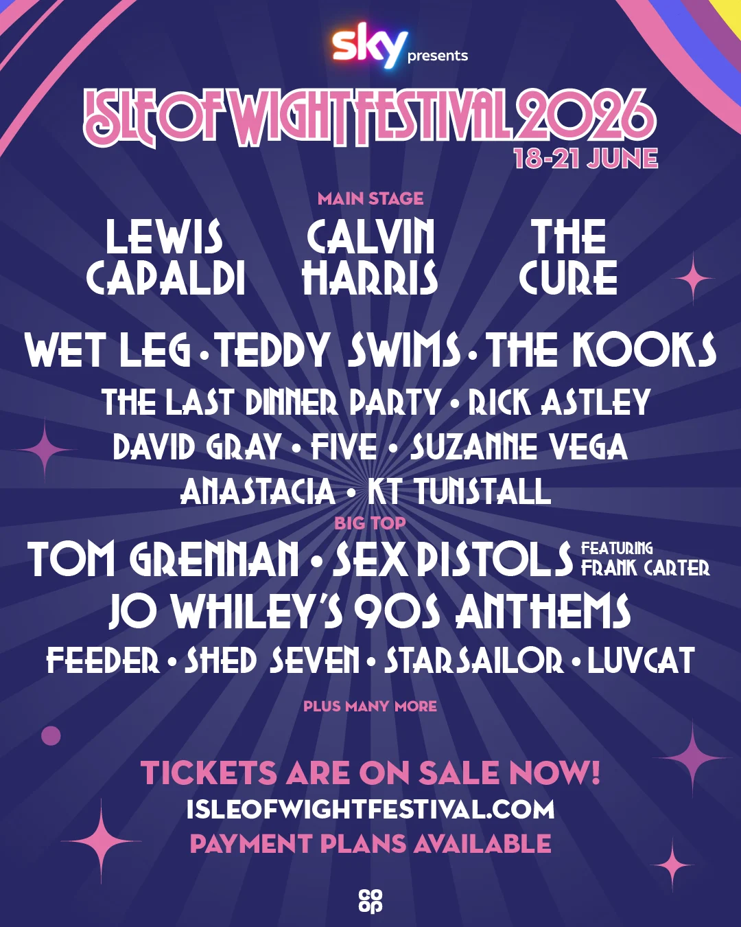 Held by the water near Newport on the Isle of Wight, this one can often be overlooked in favour of its more extravagant competition. But the next lineup is very robust, sporting big headliners from Scotland in the ever-endearing Lewis Capaldi, electronic chart-topper Calvin Harris, and England’s darlings, The Cure. A fantastic mix of old and new for families and all ages, including Rick Astley, and current favourites The Last Dinner Party. Runs 18 to the 21 of June.